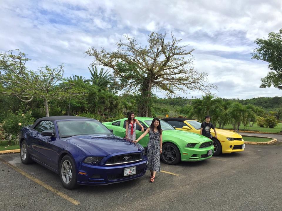 租車到南部遊~我們這次關島租的車是綠色野馬新款車很好開又很新~謝謝老闆親切的到飯店接送牌子上還寫著中文字,濃濃的台灣人情味 推薦EZ價格實在
