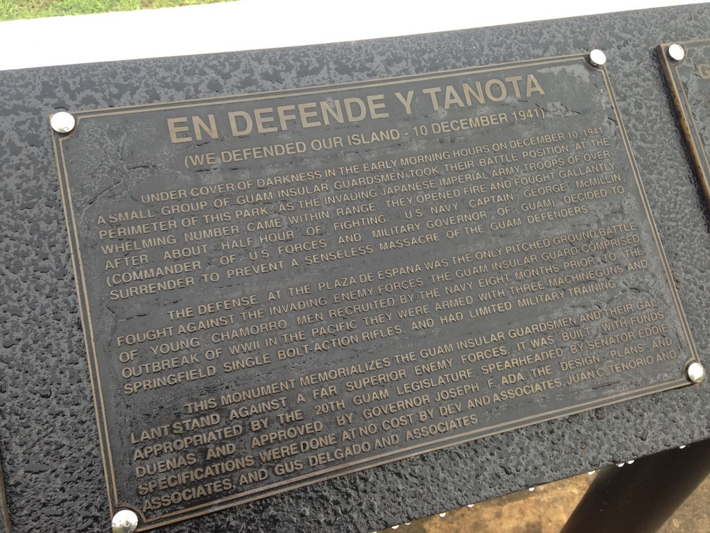 此紀念碑位於《聖母瑪利亞大教堂》、《教宗紀念碑》與《西班牙廣場》中間,表彰關島戰役中英勇的《關島駐守美軍Guam Insular Force Guard》,對歷史有興趣的朋友可以搜尋關島戰役,可以得到更多資訊喔。