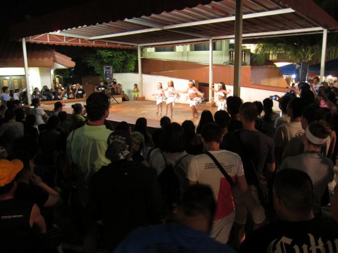 而在活動中心外面也有精彩的舞蹈表演,由查莫洛人組成的表演團體帶來查莫洛族的傳統舞蹈,除了成人舞者外,還有小舞者跟小小舞者,每一位舞者都很認真的表演,期望將族人的傳統舞蹈介紹給來自不同國家的觀光客,下次來到夜市,記得留點時間好好欣賞精彩的舞蹈,給這些不分年齡的表演者熱情的掌聲唷!