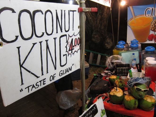 關島另一種獨特創意吃法就是《椰子果肉沙西米》了,在夜市、早市或是戀人岬都吃得到喔!