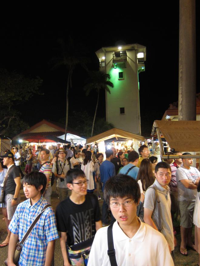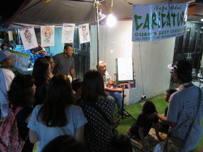 每週三的查莫洛夜市總會聚集關島當地人及來自不同國家的觀光客,尤其是日本觀光客為最大宗,總是可以遇見整群日本女孩子,打扮的漂漂亮亮,穿著連身小洋裝,頭髮上別上一朵太陽花,非常好辨識。其次是韓國觀光客、台灣觀光客...,來自歐美國家金髮碧眼的觀光客則是少數。