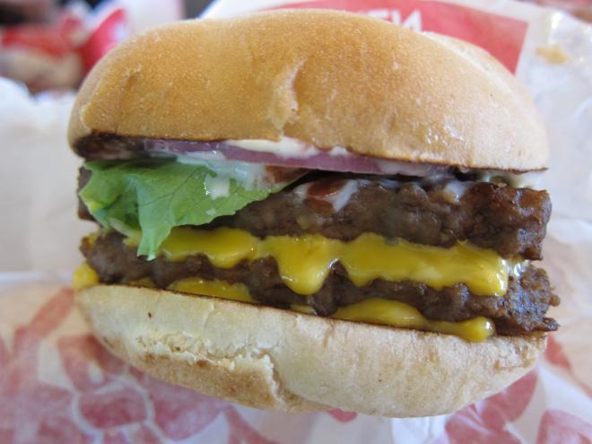 牛肉漢堡,麵包是扎實的口感,不像麥當勞是鬆軟的,吃起來很有飽足感。