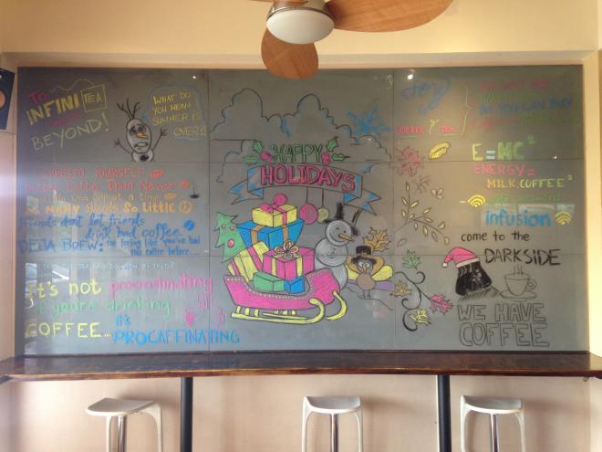 一進入INFUSION,映入眼簾的就是這一面塗鴉牆,會隨時變換塗鴉。牆上最吸引人的當屬「E=MC2 ~ ENERGY=MILK.COFFEE2」了,真是解釋得太好了。